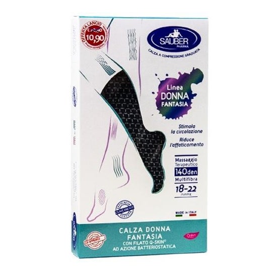 Sauber Q-skin 140D Meias Listradas Biscotto Preto Tamanho S-M 1 Par é a escolha perfeita para quem deseja melhorar a circulação e o bem-estar das pernas ao longo do dia. Estas meias de compressão graduada foram projetadas para oferecer suporte e conforto, sendo especialmente úteis para pessoas que passam muito tempo em pé, viajam com frequência ou buscam prevenir a sensação de cansaço nas pernas. Com tecnologia de filato Q-SKIN e uma compressão de 140 deniers, estas meias geram uma pressão gradual que favorece o retorno venoso, ajudando a reduzir o inchaço e a fadiga. Entre suas características principais está seu efeito antibacteriano, que mantém a pele fresca e protegida, assim como seu ajuste anatômico e tecido suave, que garantem conforto durante todo o dia. São ideais para o cuidado diário, contribuindo eficazmente para a prevenção de desconfortos circulatórios e melhorando a qualidade de vida e o bem-estar das pernas.