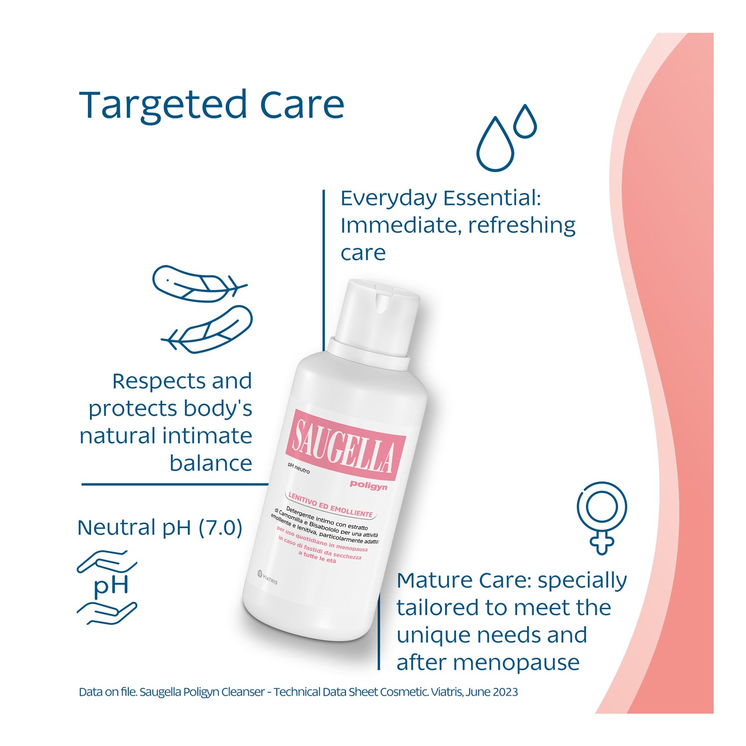 Saugella Poligyn pH 7 sabonete íntimo 250ml é um sabonete íntimo diário especialmente desenvolvido para as mulheres na menopausa. Sua composição rica em camomila proporciona um alívio e frescor instantâneos e diminui as irritações causadas pelo prurido vulvar.