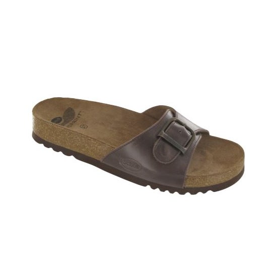 - Parte superior formada por uma faixa de couro que envolve suavemente o pé.