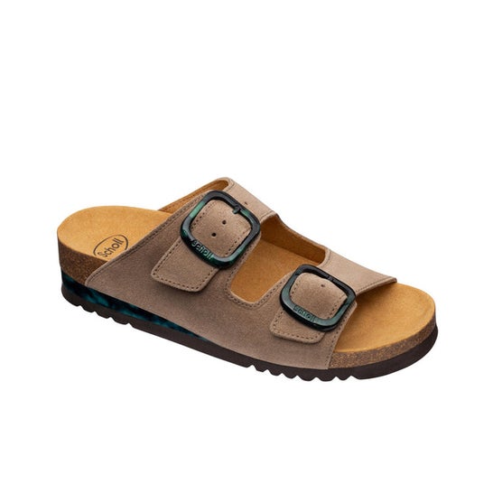 Sandália Scholl Ilary com 2 correias de camurça, cor taupe, tamanho 36, 1 par.
