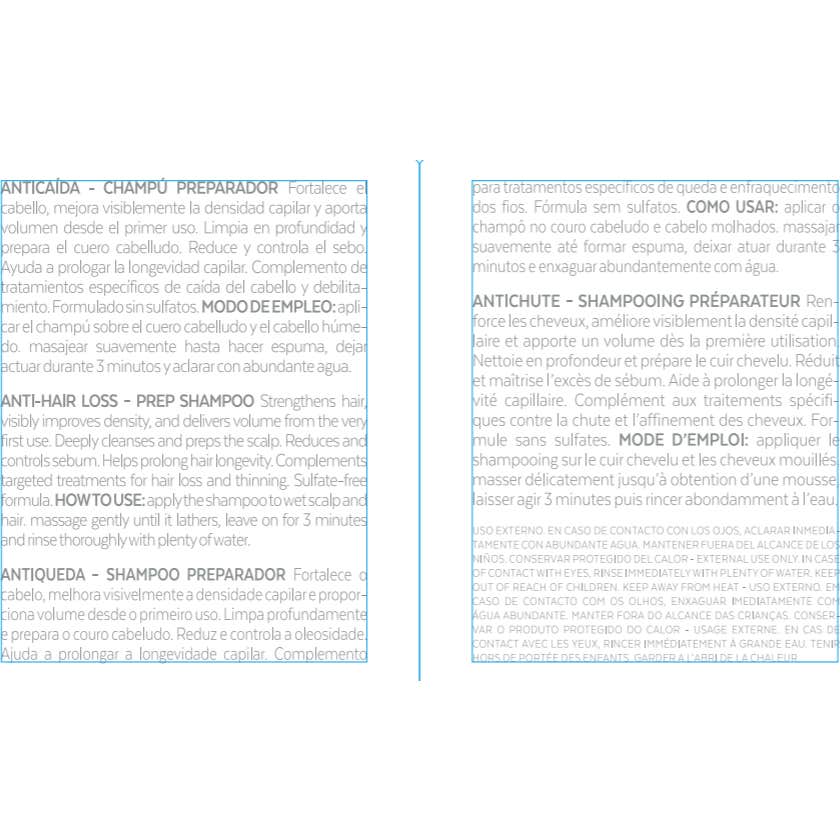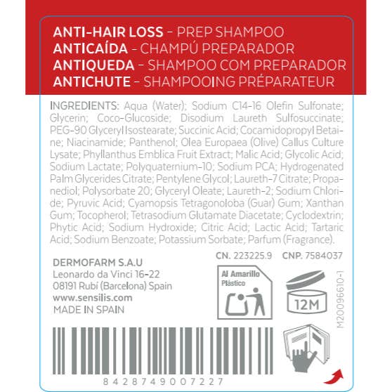 Champô formulado sem sulfatos, projetado especificamente para preparar o couro cabeludo antes de tratamentos antiqueda.