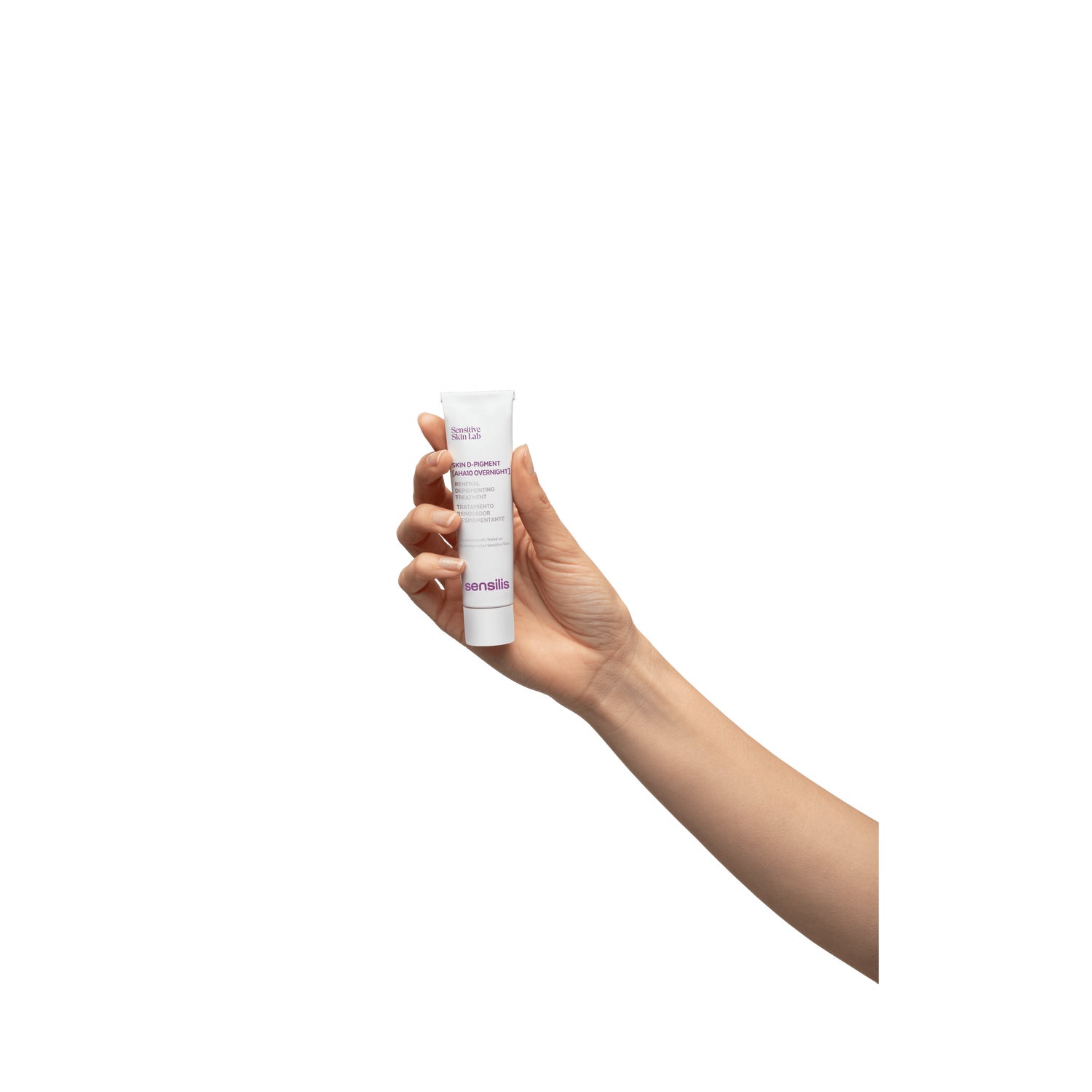 Sensilis Skin D-Pigment [AHA10 Overnight] Depigmentation Renewal Treatment 30ml é um tratamento de renovação da superfície da pele desenvolvido com ácido tranexâmico para cuidados noturnos.