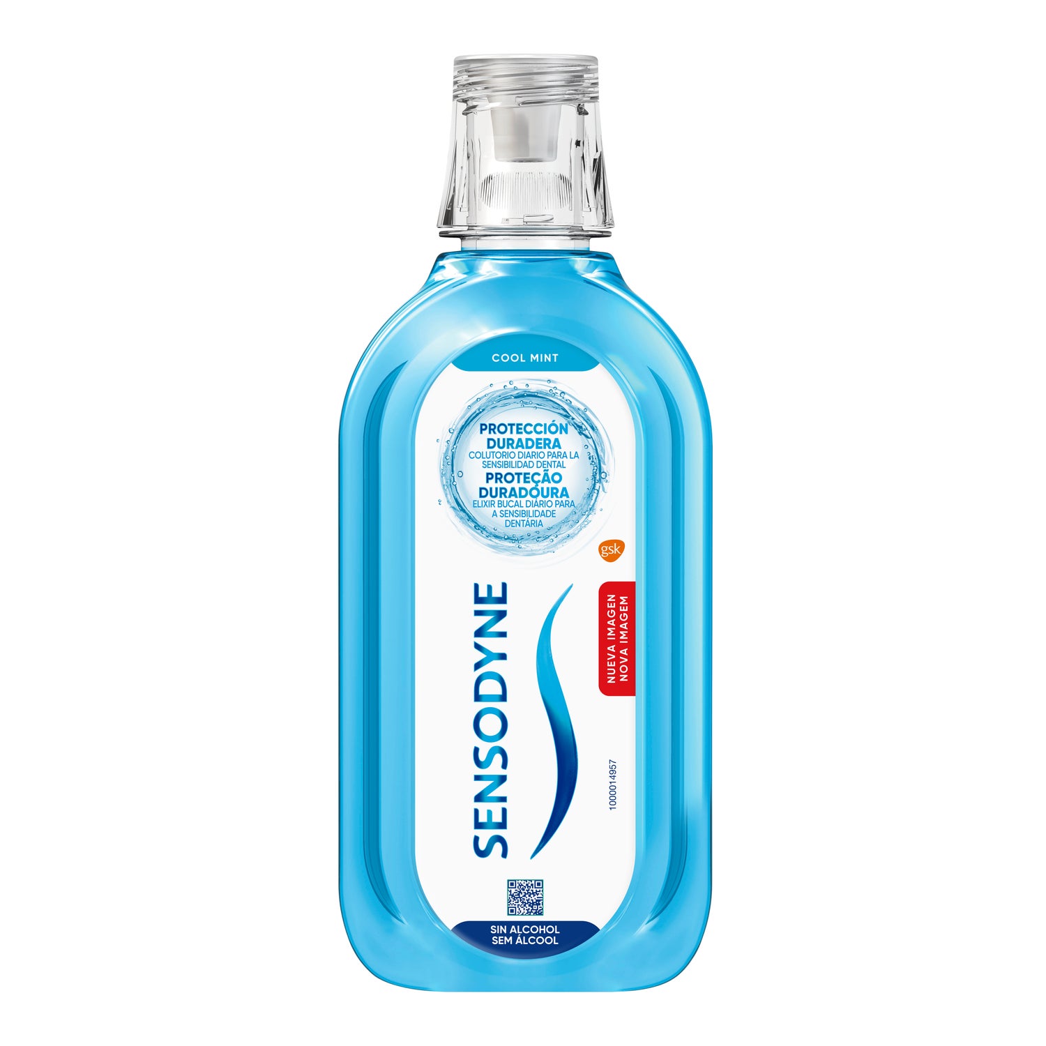 O colutório Sensodyne Splash Cool Mint apresenta uma fórmula especificamente projetada para dentes sensíveis. Contém 3% p/p de nitrato de potássio que oferece uma proteção continuada contra a sensibilidade dental. Sua fórmula não contém álcool.