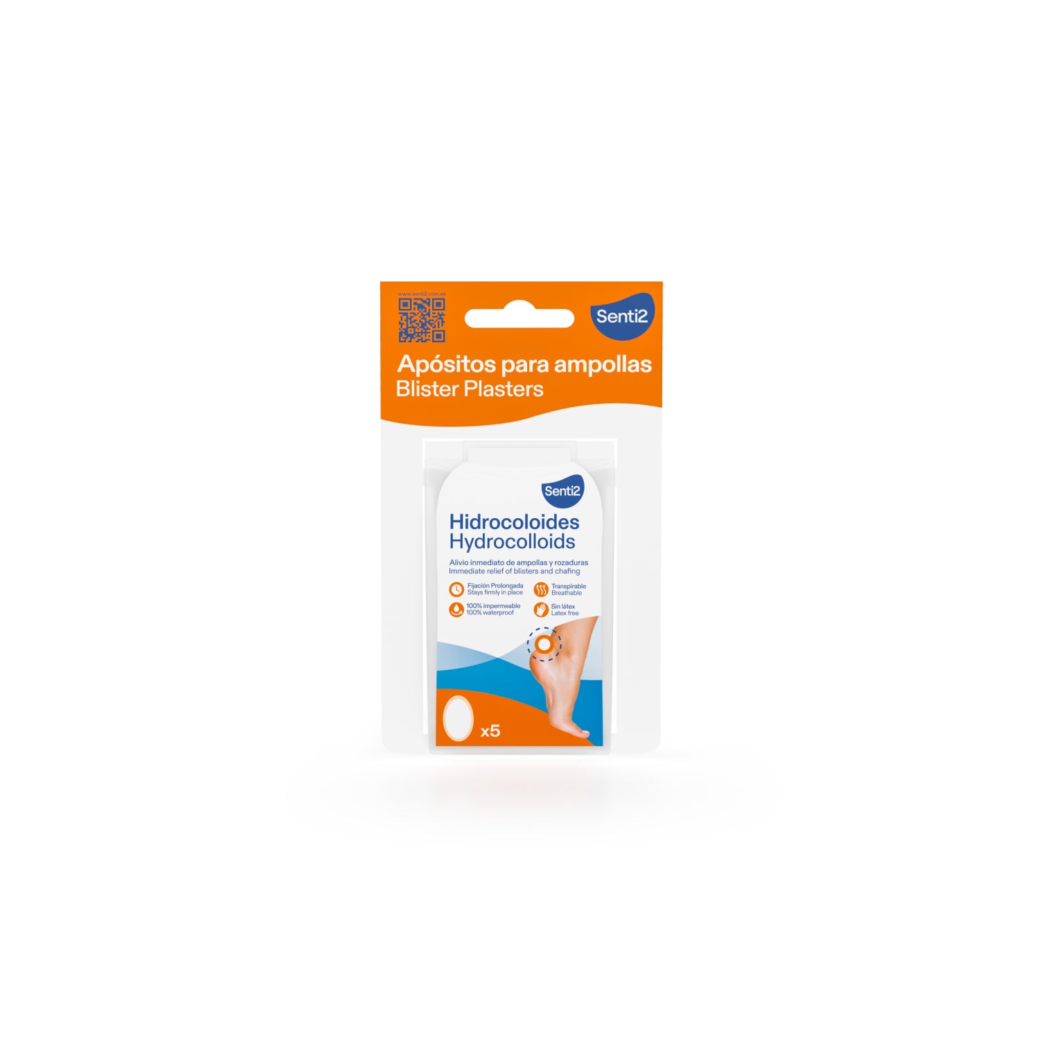 Senti2 Curativo Hidrocoloide Bolhas 5uds. A tecnologia hidrocoloide é um gel ativo com partículas que absorvem o excesso de fluido, formando um acolchoado reforçado que: