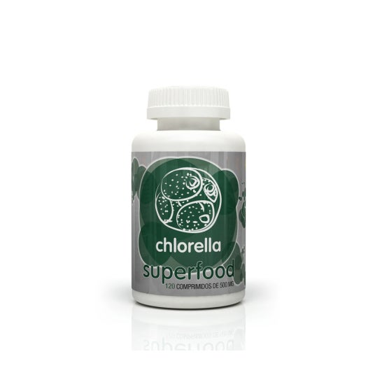 Suplemento alimentar com clorela proveniente de cultivo biológico. Proveniente de cultivo biológico. É uma importante fonte de proteínas, de 40 a 50% do seu peso seco, e de outros nutrientes como minerais e vitaminas: magnésio, ferro, fósforo, zinco, vitamina B6, B12, A, etc. Tem muito poucas gorduras saturadas. Além disso, a clorela possui em sua composição todos os aminoácidos essenciais, o que a torna um alimento a ter em consideração em dietas veganas e vegetarianas. Sem qualquer tipo de aditivo (corantes, edulcorantes artificiais, conservantes) e livre de agentes de carga, aglutinantes ou outros excipientes.
