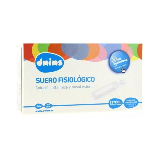 Solução fisiológica especialmente formulada para a higiene nasal e oftálmica de bebés. É adequado para a higiene das feridas, irrigação, queimaduras, limpeza das narinas e dos olhos. Ajuda a remover muco e sujidade das membranas mucosas sensíveis das crianças. Pode ser utilizado para enxaguar cateteres de bexiga, instrumentos e equipamento médico. Disponível em 30 pacotes de dose única estéreis. Para uso externo, não engolir. Adequado para crianças a partir do nascimento.