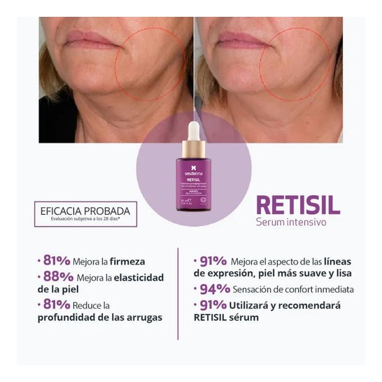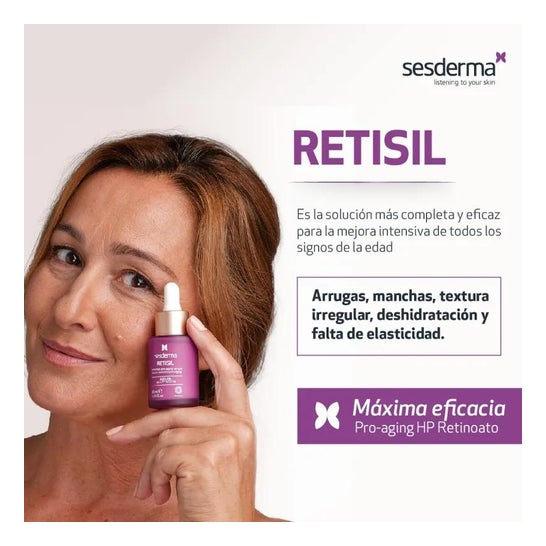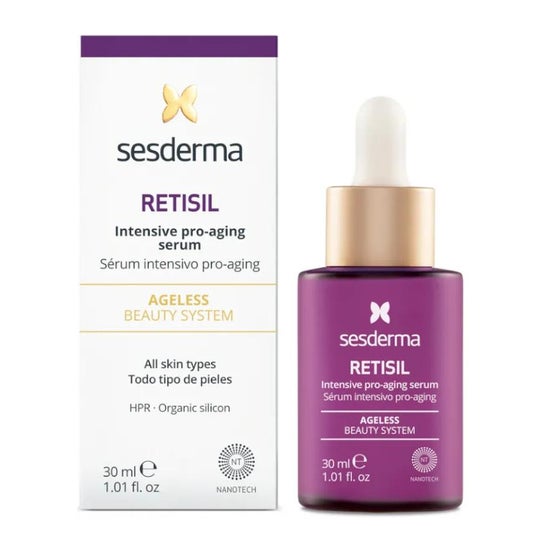 Sesderma Retisil Intensive Pro-aging Serum 30ml é um sérum anti-envelhecimento que ajuda a firmar a pele e a atenuar o aparecimento de linhas de expressão .