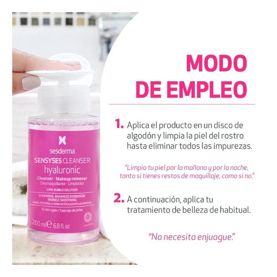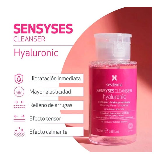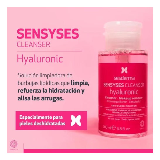 Sesderma Sensyses Cleanser Hyaluronic 200ml é um produto de limpeza facial com ácido hialurónico que remove a maquilhagem e as impurezas da pele sem a secar.