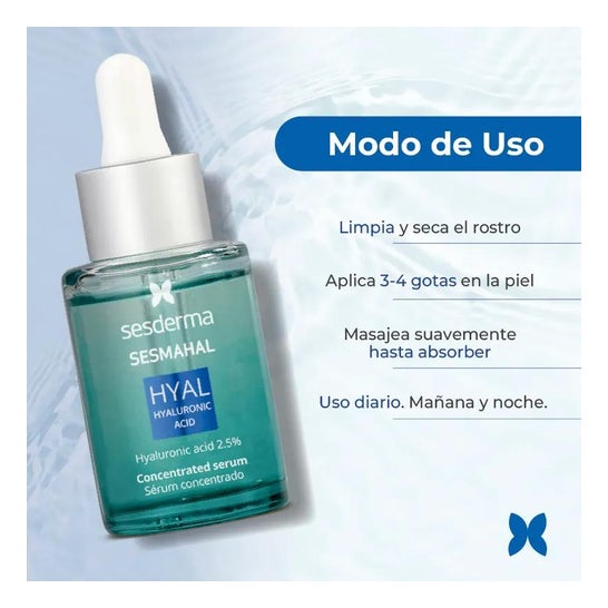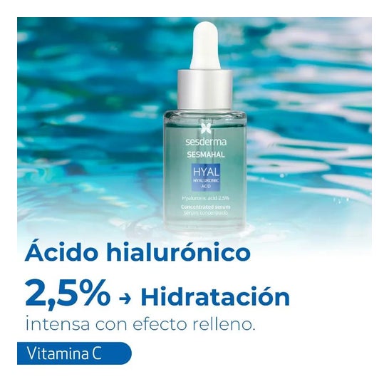 Sesderma Sesmahal Hyal Ácido Hialurônico 2,5% 30ml é um sérum concentrado hidratante e preenchedor, com 2,5% de ácido hialurônico, que ajuda a preencher rugas e linhas de expressão.