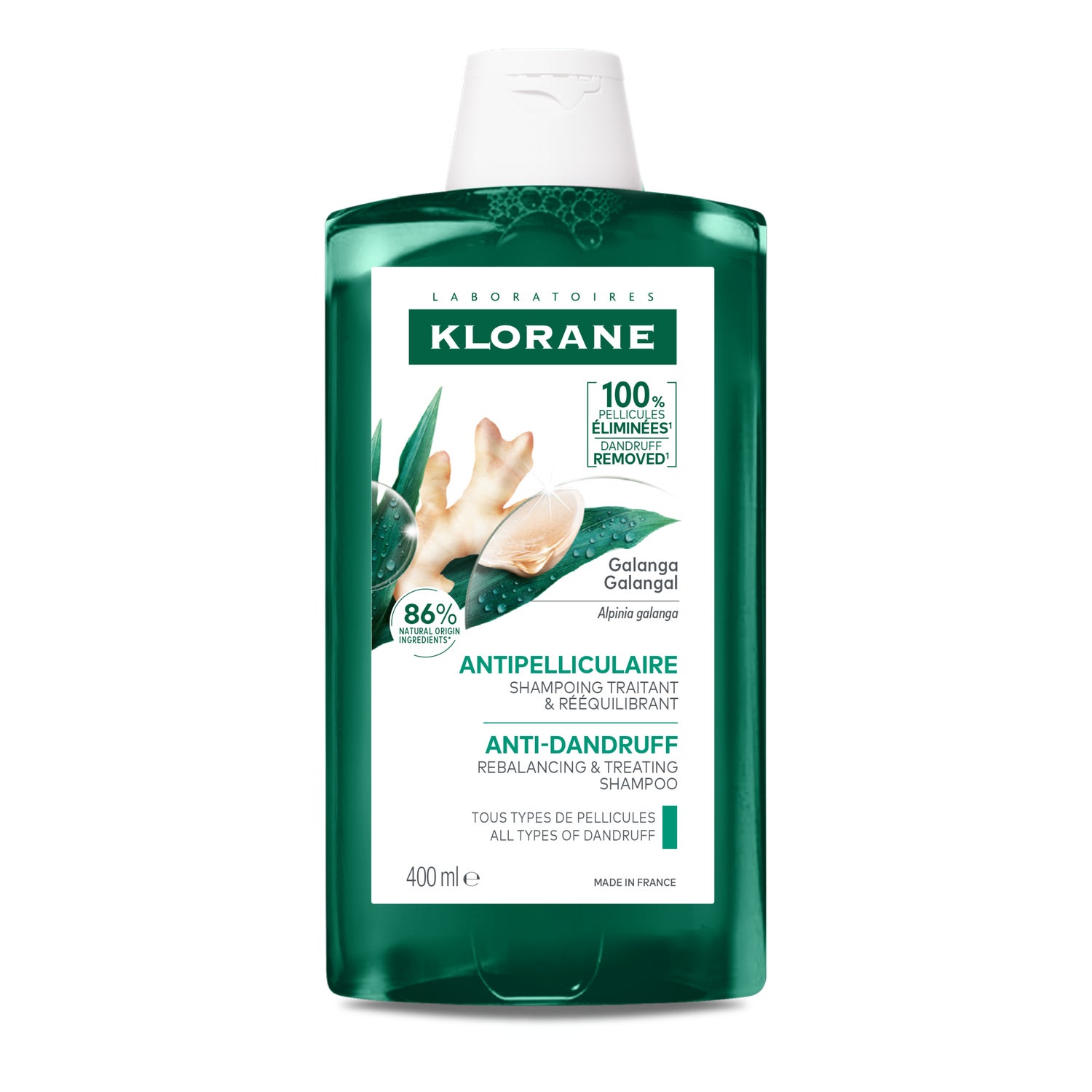 Klorane Champô de Galanga 400ml é um champô reequilibrante de alta tolerância com 86% de ingredientes de origem natural para a higiene diária do cabelo com caspa ou tendência à descamação.