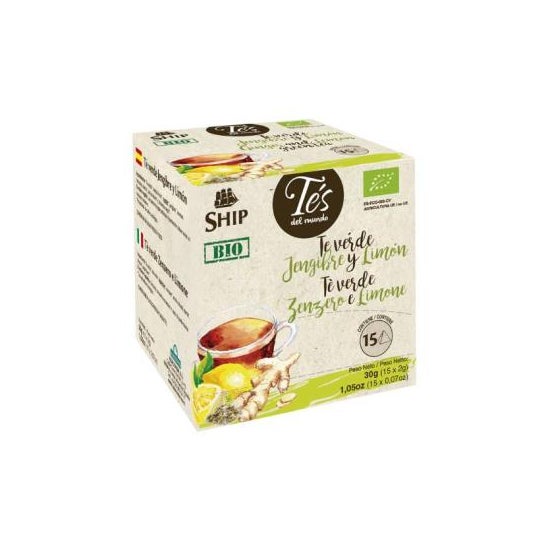 Ship Chá Verde Gengibre Limão Pirâmide 15uds é uma infusão com um potente efeito antioxidante, perfeita para potencializar o bem-estar diário. Esta mistura de chá verde, gengibre e casca de limão é apresentada em práticos filtros pirâmide, oferecendo um sabor refrescante e aromático.