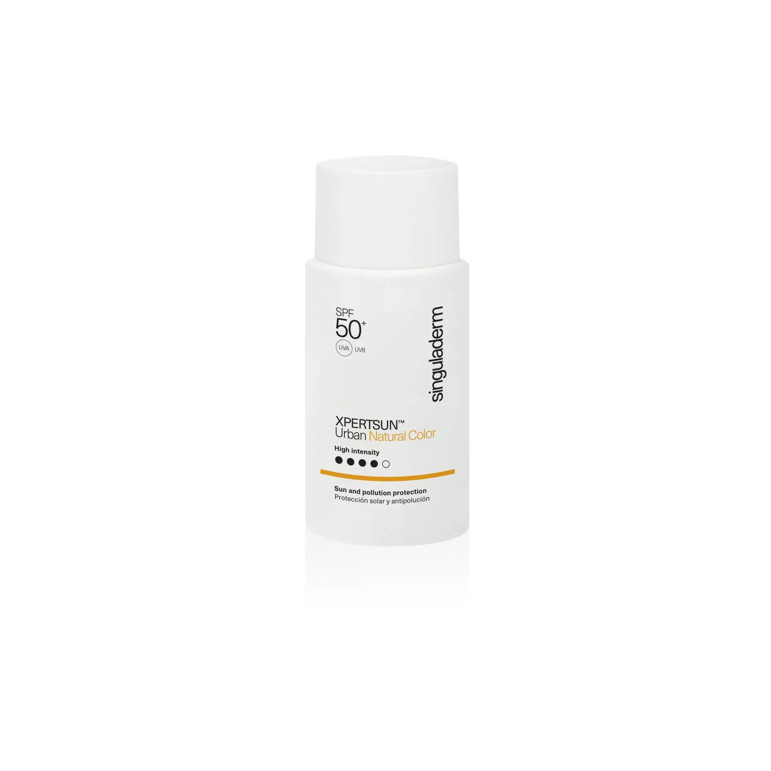 SingulaDerm Xpert Sun Urban Natural Color High Intensity 50ml é um protector solar e anti-poluição que ajuda a proteger a pele da acção dos raios solares, graças à sua combinação de filtros fotoestáveis SPF50+. A sua textura fluida e leve ajuda a prevenir os efeitos nocivos do sol, da poluição urbana e da fadiga. Contém também pigmentos que contribuem para unificar o tom do rosto. Contém 50ml.