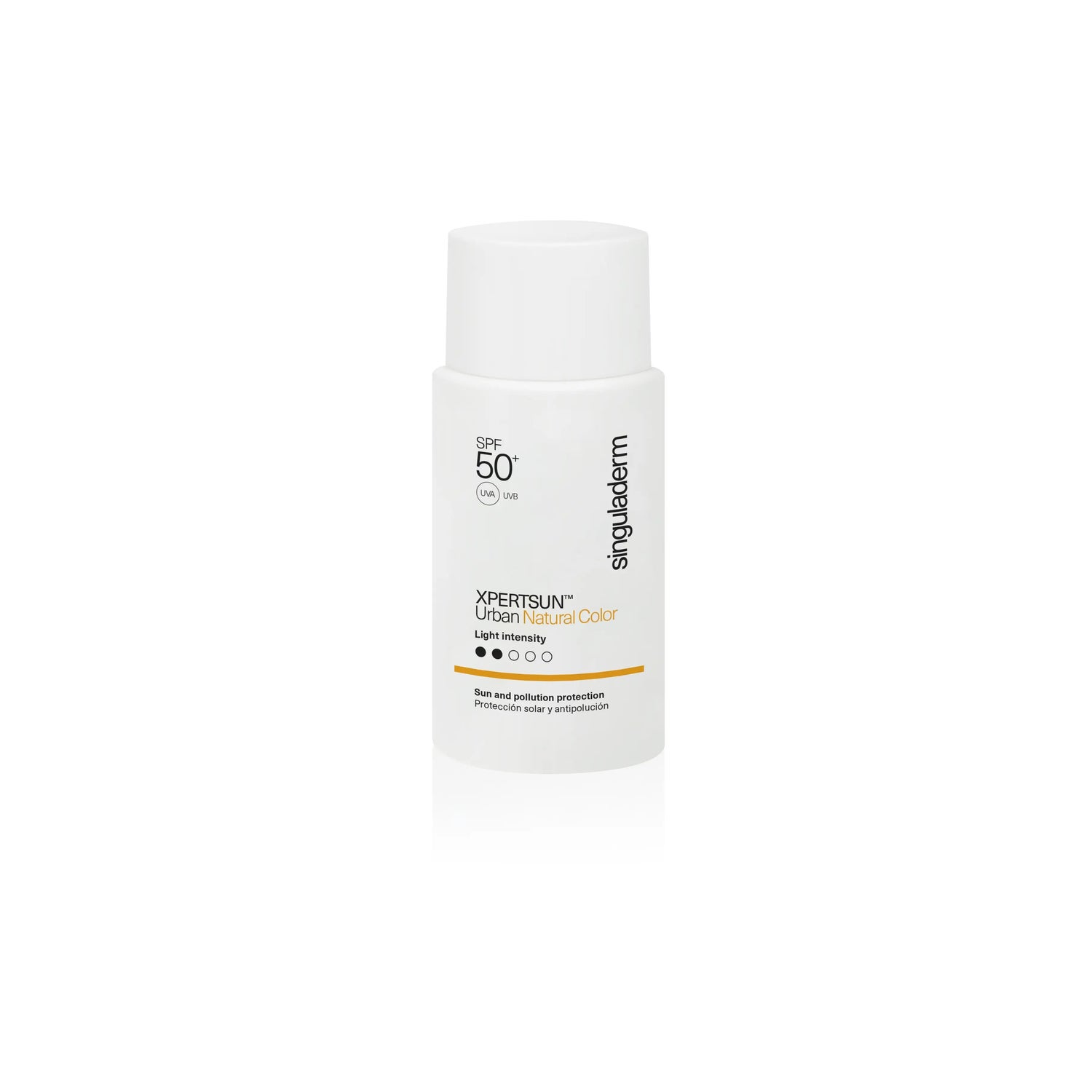 SingulaDerm Xpert Sun Urban Natural Color Low Intensity 50ml é um protector solar de uso diário que ajuda a proteger a pele da acção do sol e previne o envelhecimento prematuro da pele. Esta protecção facial também ajuda a limitar os efeitos da poluição e ajuda a reduzir os sinais de fadiga. Absorção rápida e textura leve.
