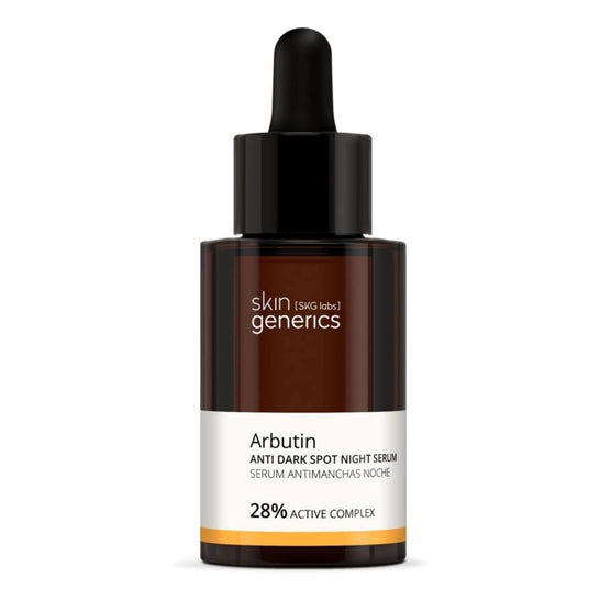 Skin Generics Arbutin 28% Serum Antimanchas é um sérum projetado para regular a produção de melanina e reduzir a aparência de manchas na pele. Com 28% de complexo ativo, este produto promove uma pele mais uniforme e luminosa. Sua fórmula inovadora, enriquecida com Arbutina, atua também minimizando os poros e melhorando a textura da pele, deixando-a visivelmente mais clara e revitalizada.