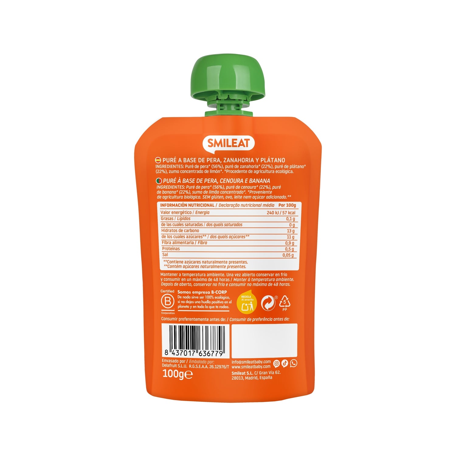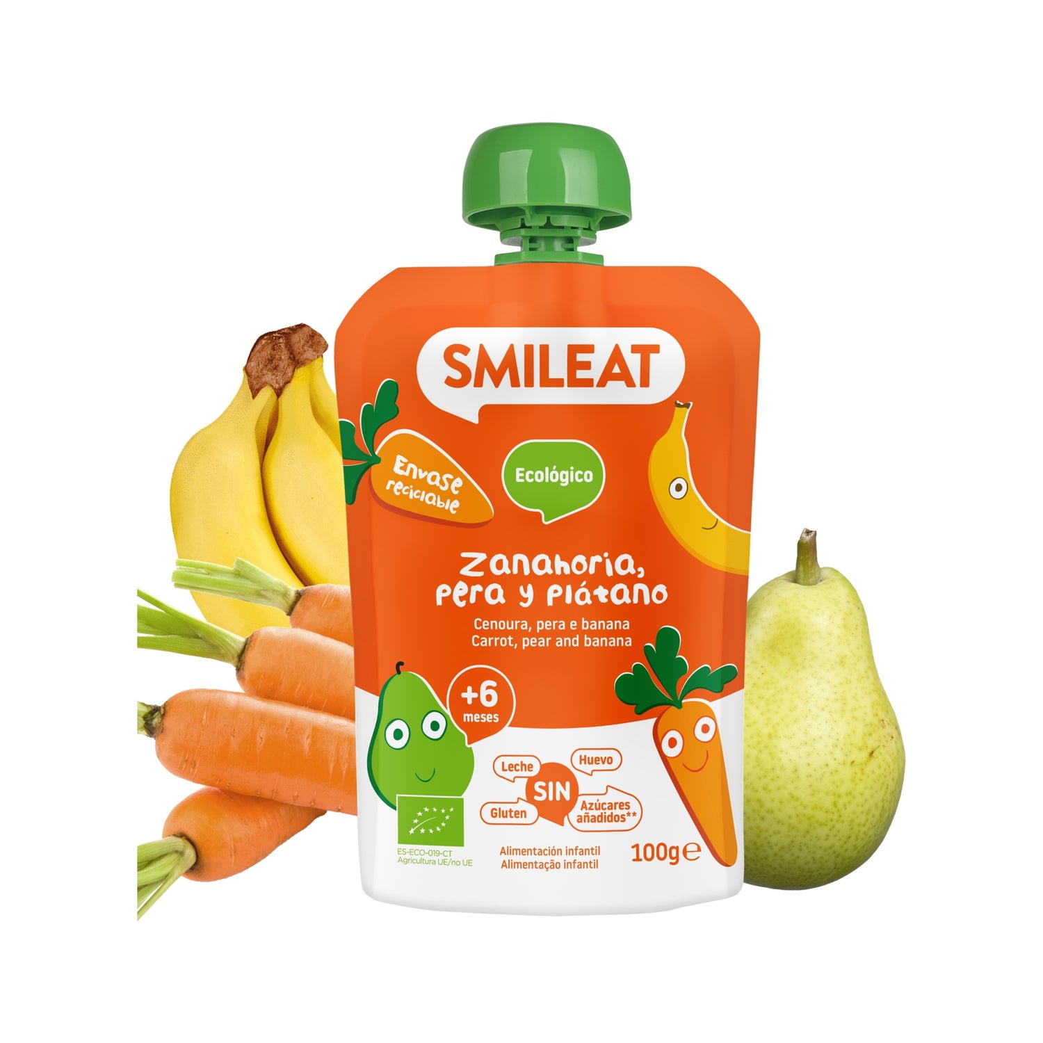 Smileat Pouch Ecológico de Zanahoria Pera y Plátano 100g