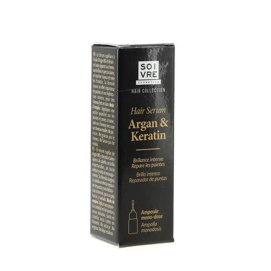 Sérum apresentado em monodoses de ampolas de 4,5 ml deixa o cabelo suave, sem frizz e cheio de brilho. A sua formulação com óleo de argão e queratina ajuda a reparar as pontas danificadas. A sua fórmula garante no cabelo um efeito reparador das pontas e uma hidratação intensiva, para um cabelo forte e cuidado. Não deixa resíduos, sem parabenos nem sulfatos.