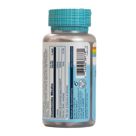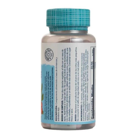 Suplemento alimentar em cápsulas de celulose vegetal, especialmente concebido para ajudar no funcionamento normal do trato urinário, graças à sua fórmula à base de arando vermelho americano e d-manose. É totalmente compatível com uma dieta vegetariana e vegana.