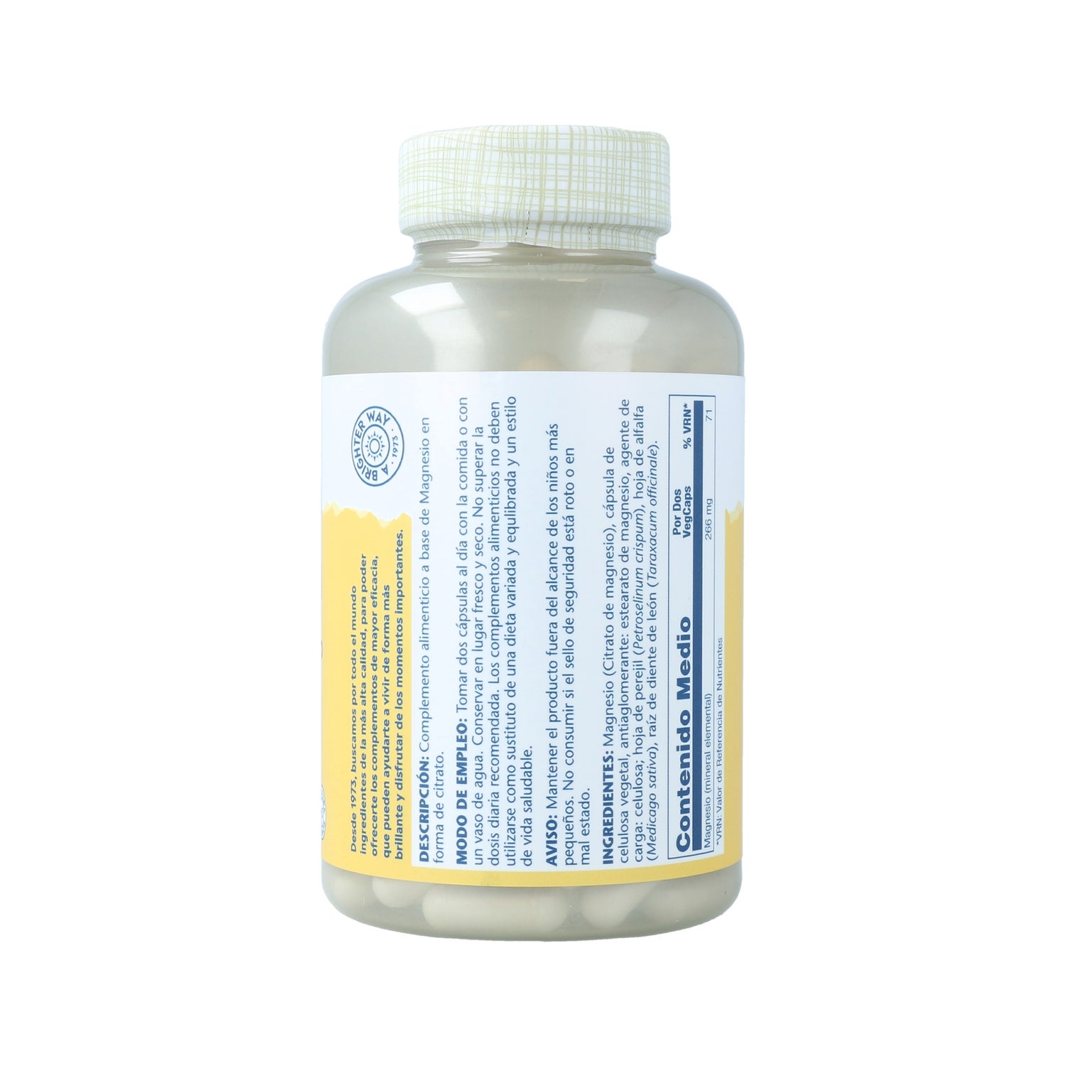Duas cápsulas fornecem 266 mg de citrato de magnésio. O citrato de magnésio, em vez de magnésio, é utilizado porque o citrato é melhor absorvido devido à sua maior biodisponibilidade.