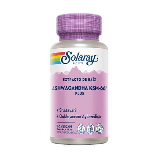 Solaray Ksm66 Plus Ashwagandha 60 Vegcaps é um suplemento alimentar elaborado a partir de Withania somnifera, padronizado para fornecer 1,5% de withanólidos, os compostos ativos próprios desta planta.