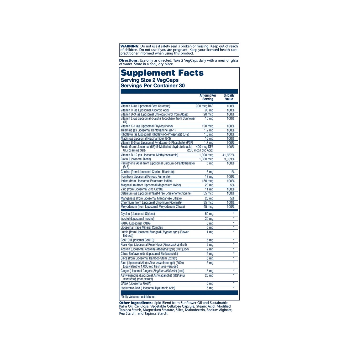 Solaray Liposomal Multivitamin Women 60caps é um suplemento alimentar formulado com múltiplas vitaminas e minerais que ajudam a proteger o sistema imunitário e a fornecer energia. É também enriquecido com ashwagandha, GABA, ácido hialurónico e sílica de bambu; ingredientes que ajudam a lidar com o stress e a lutar contra o stress oxidativo que causa o envelhecimento prematuro do corpo. Contém 60 cápsulas.