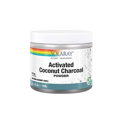Solaray Active Carbon Powder 150g é um suplemento alimentar em pó à base de carbono activo, um pó derivado da casca do coco. Este suplemento ajuda a exercer um efeito de limpeza sobre o corpo, graças às suas propriedades absorventes