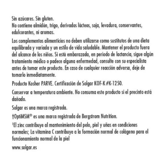 Elaborado a partir de um complexo de qualidade exclusiva que fornece vitamina C que ajuda à produção normal de colagénio e à proteção das células contra os danos oxidativos. Contém igualmente cobre, que contribui para a pigmentação do cabelo e da pele, e o OptiMSM® patenteado, um composto orgânico de enxofre.