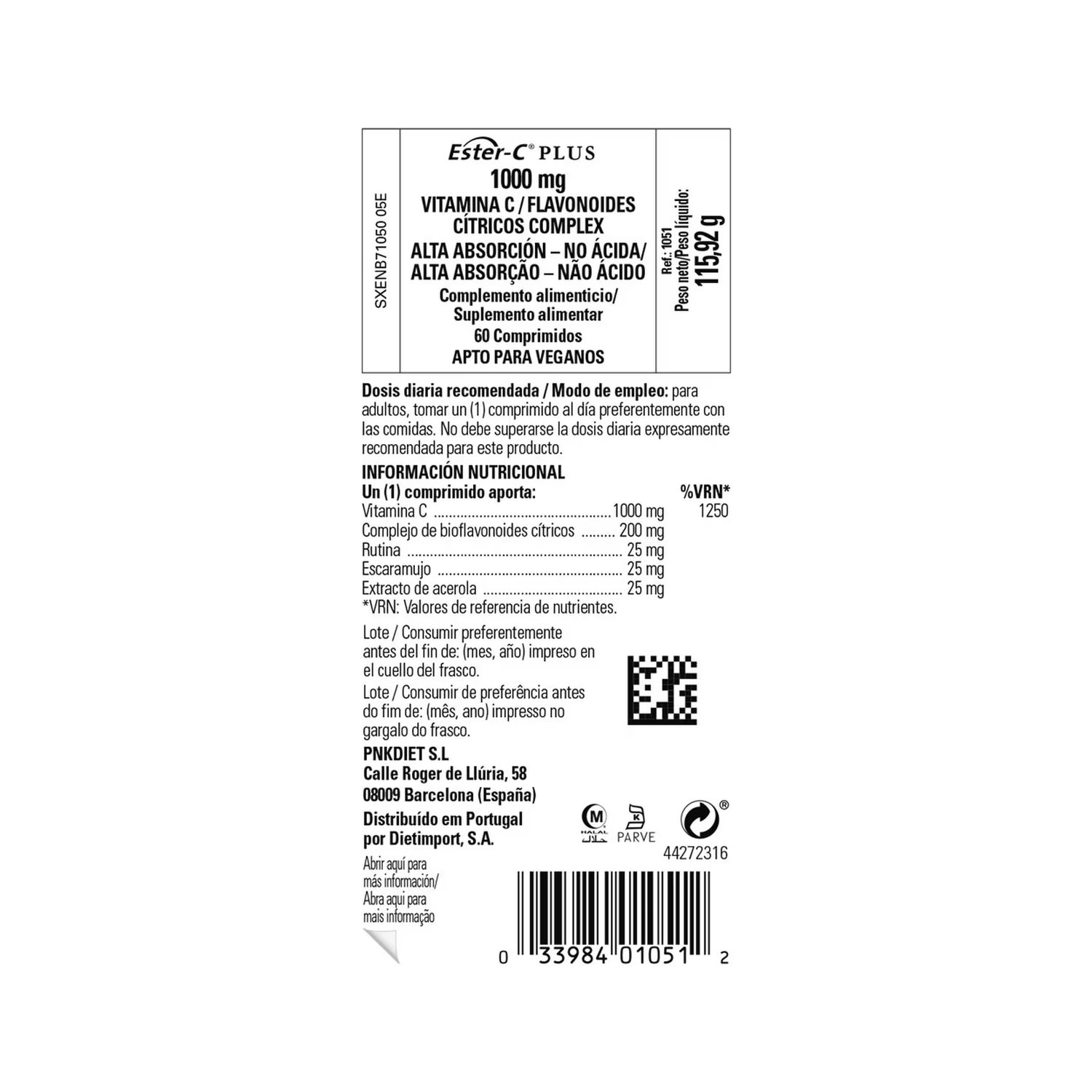 É feito de vitamina C, que contém os metabólitos que a vitamina C tem naturalmente. Também contém acerola, complexo de bioflavonóides cítricos, rutina e roseira brava, que apoiam a vitamina C de forma sinérgica.