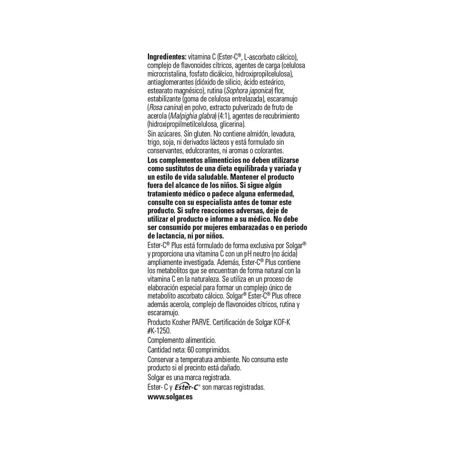 Solgar Ester-C Plus Vitamina C 1000mg 60mg é um suplemento alimentar que apoia o funcionamento normal do sistema imunitário.