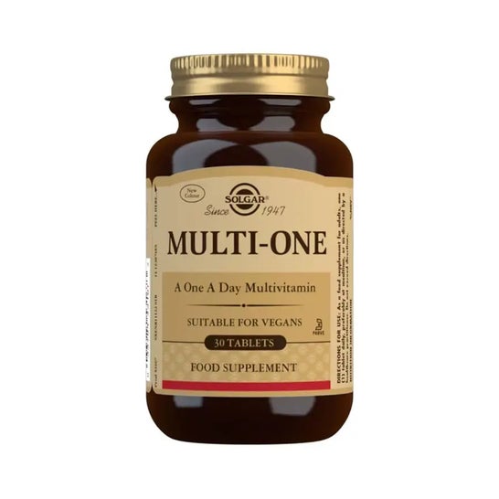 Solgar Multi-One 30comp é um suplemento alimentar com uma grande variedade de vitaminas e minerais essenciais numa base herbal.