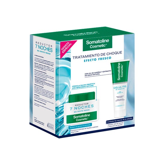 Somatoline Set Tratamento de Choque Efeito Fresco é um kit que inclui dois produtos: um Gel Redutor de 7 Noites e um Gel Anticelulítico. Este conjunto está formulado com ingredientes como: