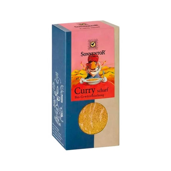Caril picante 100% orgânico, feito a partir de uma combinação de especiarias para temperar na cozinha. Com um sabor afiado, picante e estimulante, com notas de chili e gengibre. Recomendado para molhos, pratos de carne, peixe e arroz, legumes e verduras. Contém curcuma, coentro, cominho, cominho, mostarda amarela, pimentão, feno-grego, funcho, manjericão, gengibre, alecrim, sal, orégano, tomilho, alho e salva. Todos os ingredientes são orgânicos.