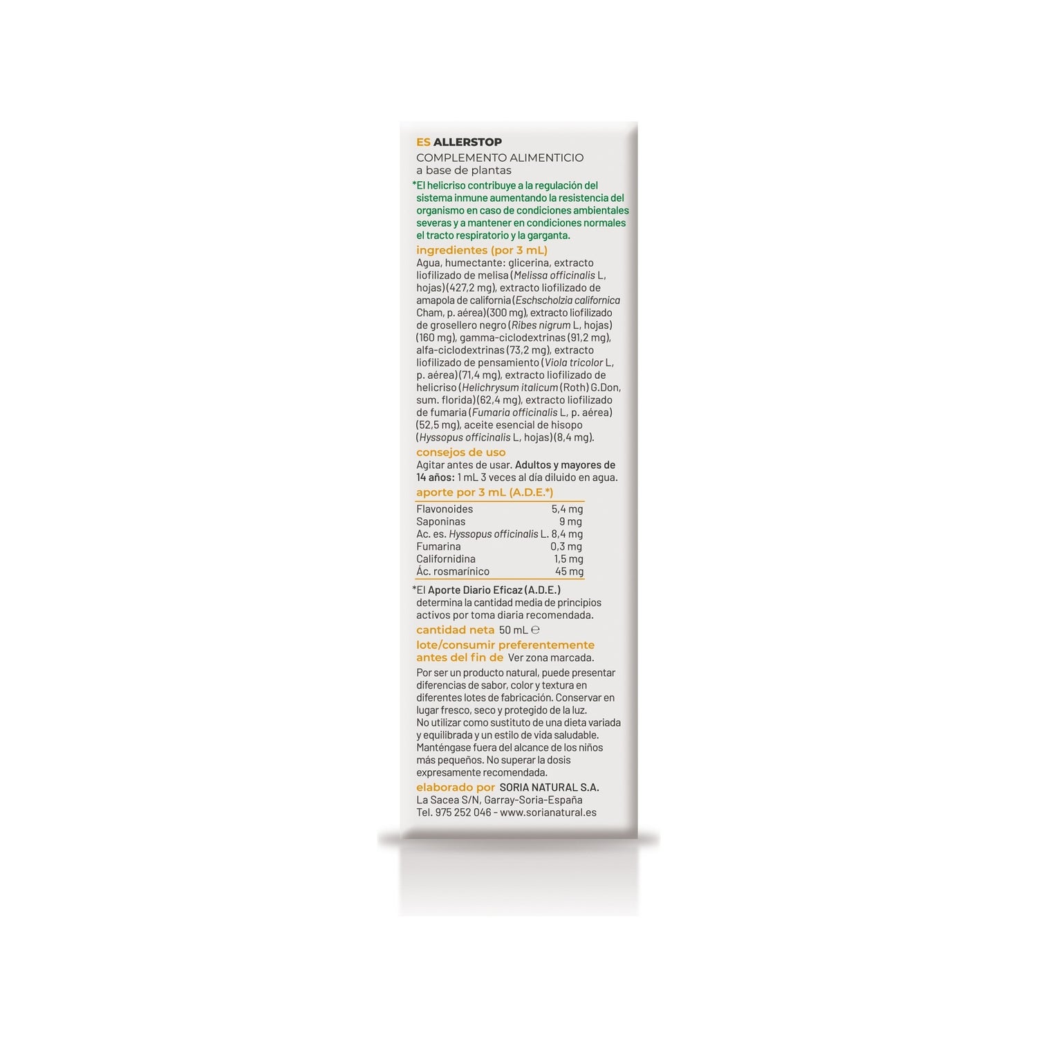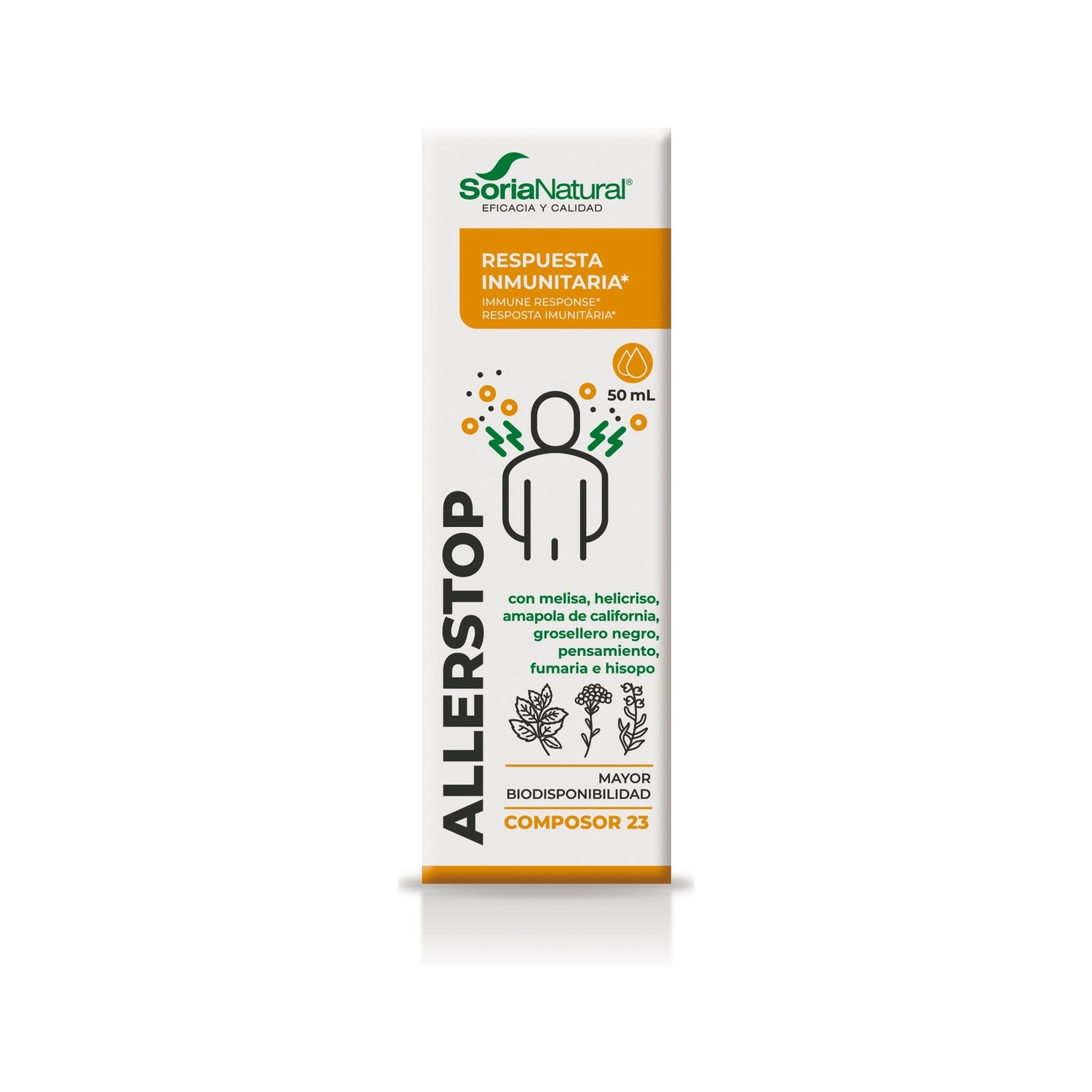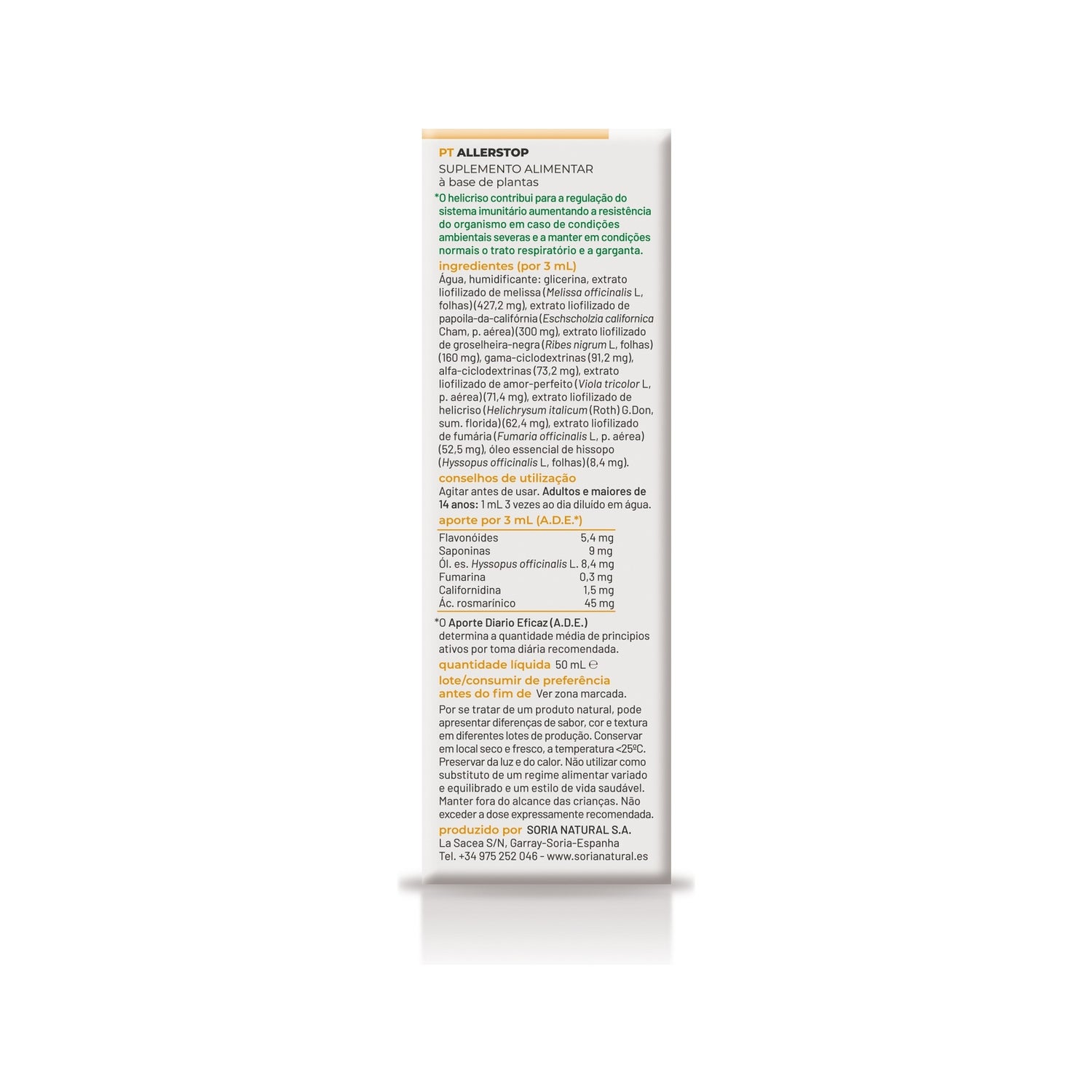 Recomendado para pessoas maiores de 14 anos com alergias, asma e rinites alérgicas. Formato de 50ml com conta-gotas.