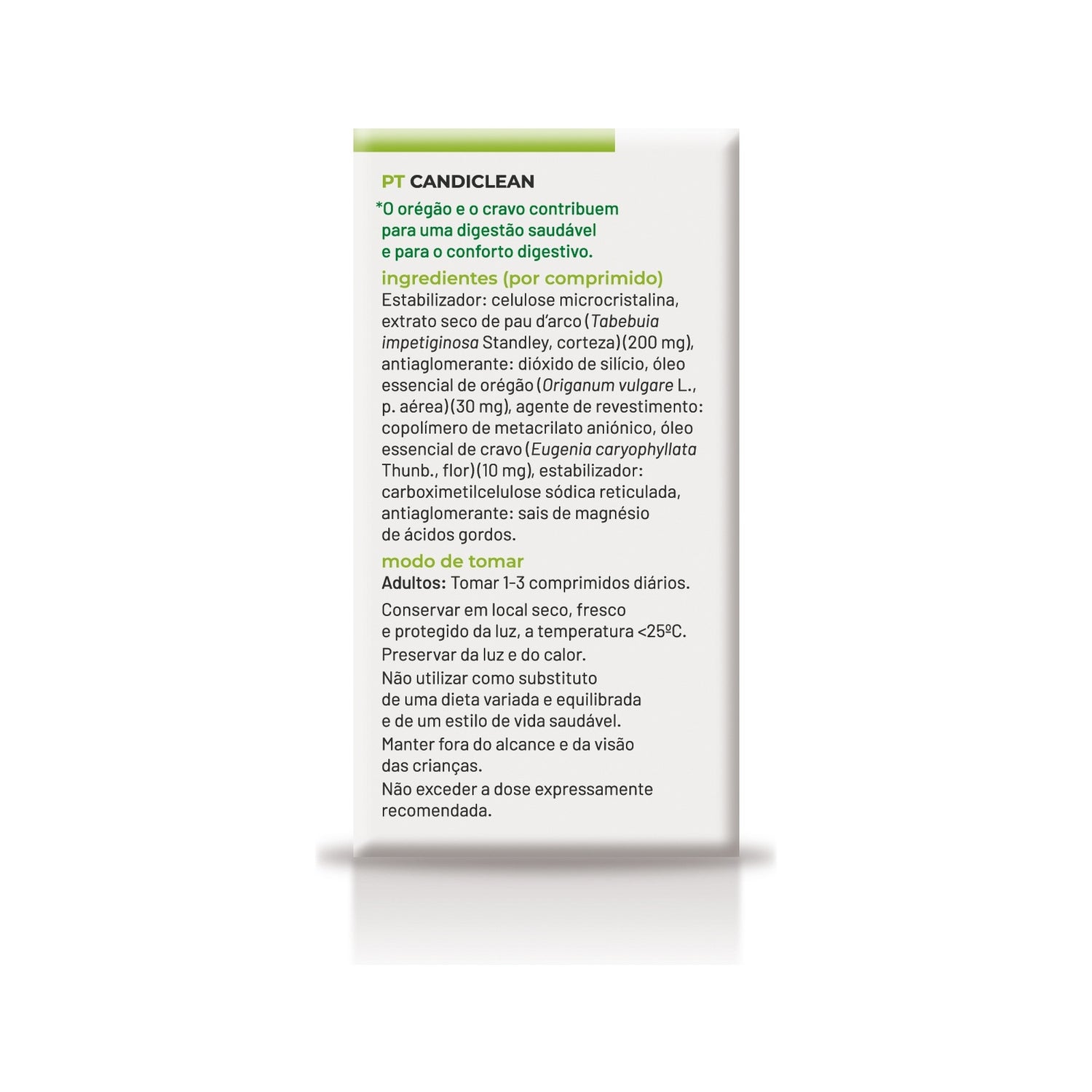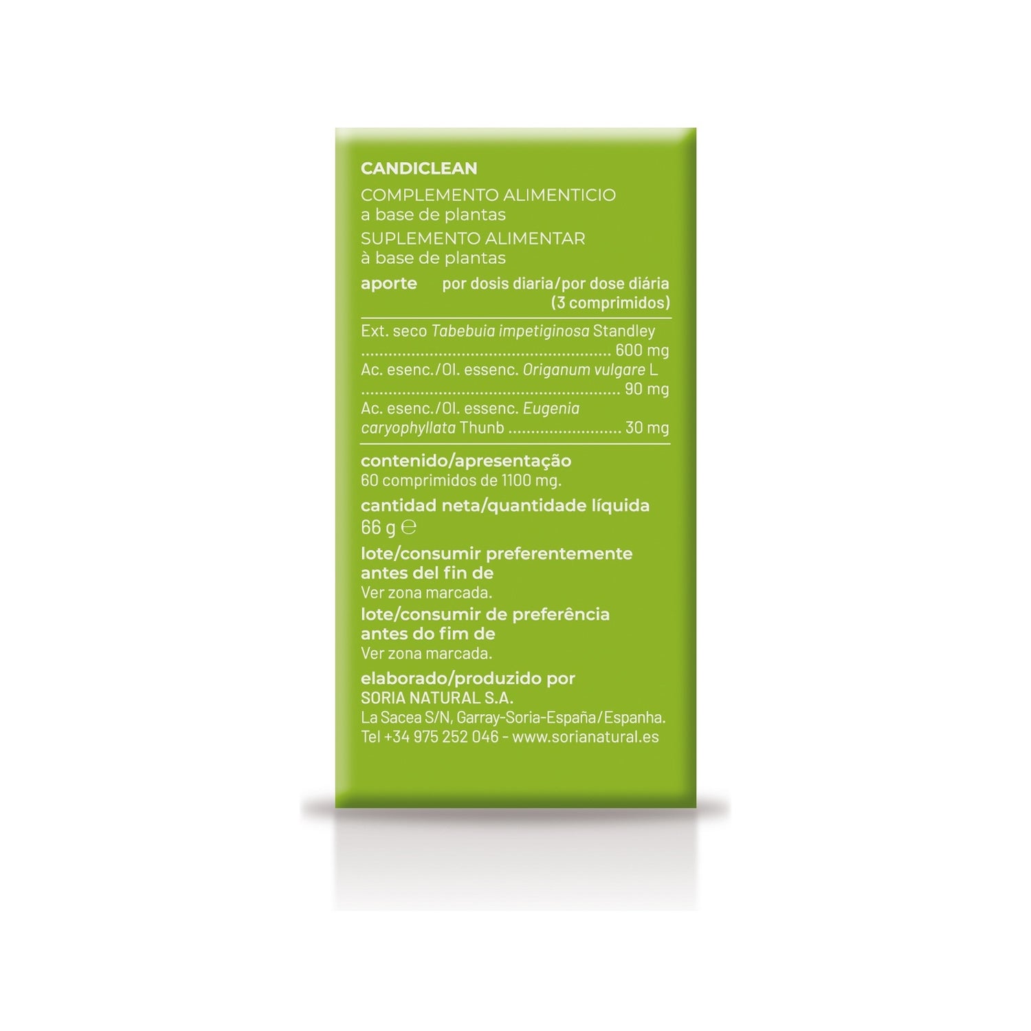 Soria Natural Candiclean 60 Comp é um suplemento natural contendo óleo essencial de orégãos, que tem um efeito antibiótico natural e é particularmente útil em casos de candidíase candida ou candidíase intestinal. Contém também óleo essencial de cravo e extracto seco de pau d'arco.