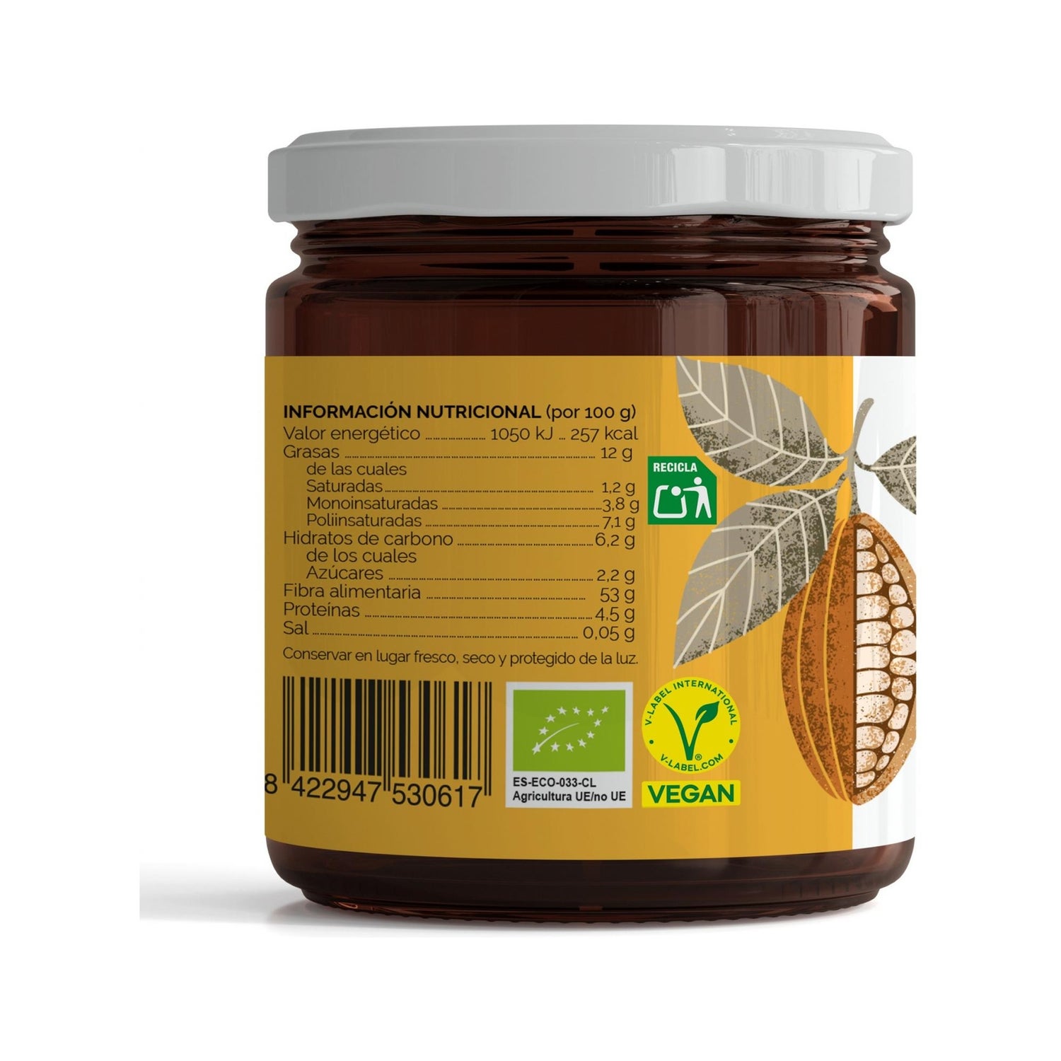 Creme de cacau sem glúten que contribui para a manutenção de um normal metabolismo energético. Ajuda a reduzir a sensação de cansaço e/ou fadiga, favorecendo simultaneamente a nutrição da massa muscular. Apresenta-se numa embalagem de vidro reutilizável e reciclável. Recomendado para o pequeno-almoço, lanches e entre refeições. Elaborado com ingredientes provenientes de agricultura 100% biológica. Adequado para veganos.
