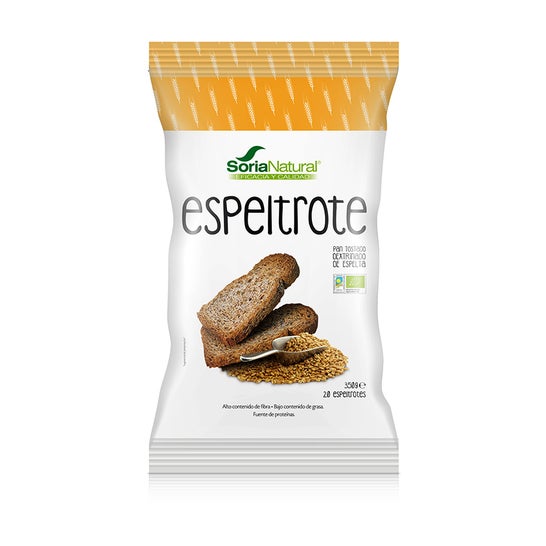 Biscote espeltrote de dextrinado de pão de espelta ecológico apresentado em embalagem 350g. Produto elaborado com: