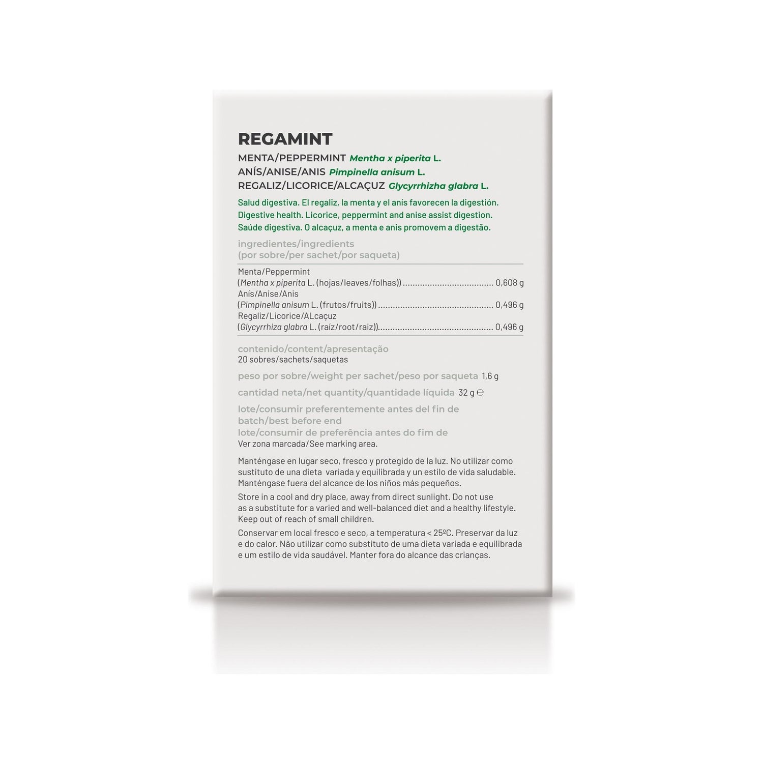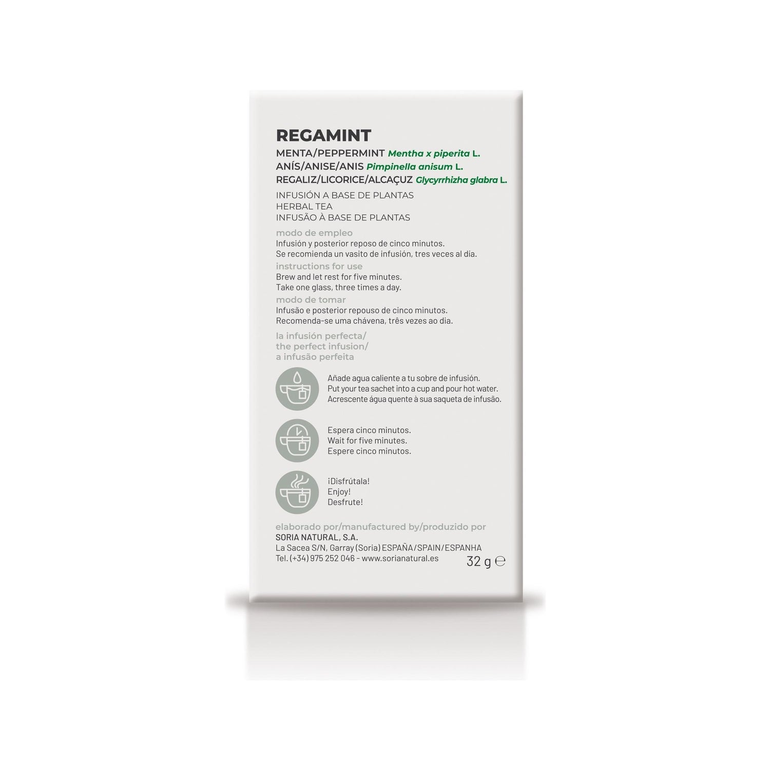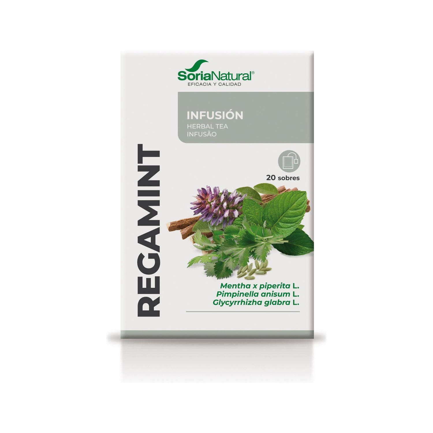 Natural Soria Regamint é uma infusão natural feita com Mentha piperita, Pimpinella anisum L. frutas e raiz de alcaçuz que ajuda a tratar problemas digestivos: