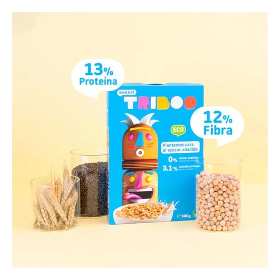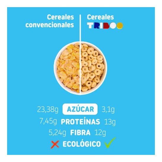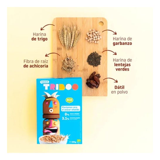 Cereal ecológico para crianças à base de proteínas de leguminosas com uma textura crocante. Não contém açúcar adicionado, adoçantes nem aditivos.