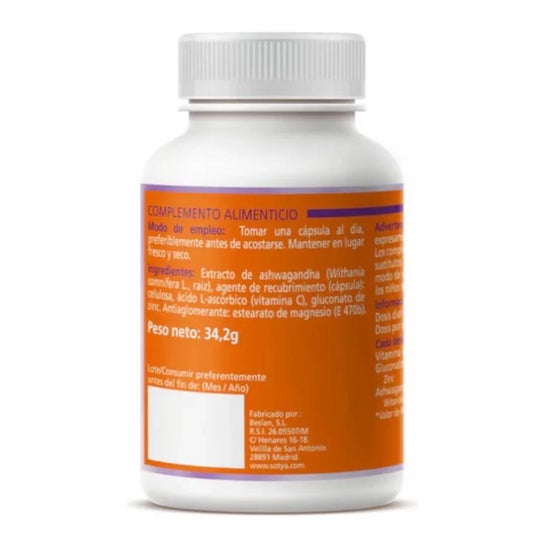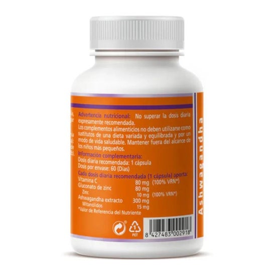 Um suplemento alimentar natural à base de ashwagandha indiano que ajuda a controlar a actividade do sistema nervoso. Ele fornece energia ao corpo e reduz os níveis de stress e os sentimentos de fraqueza. Contém propriedades antioxidantes e anti-inflamatórias, proporcionando alívio de dores articulares e musculares.