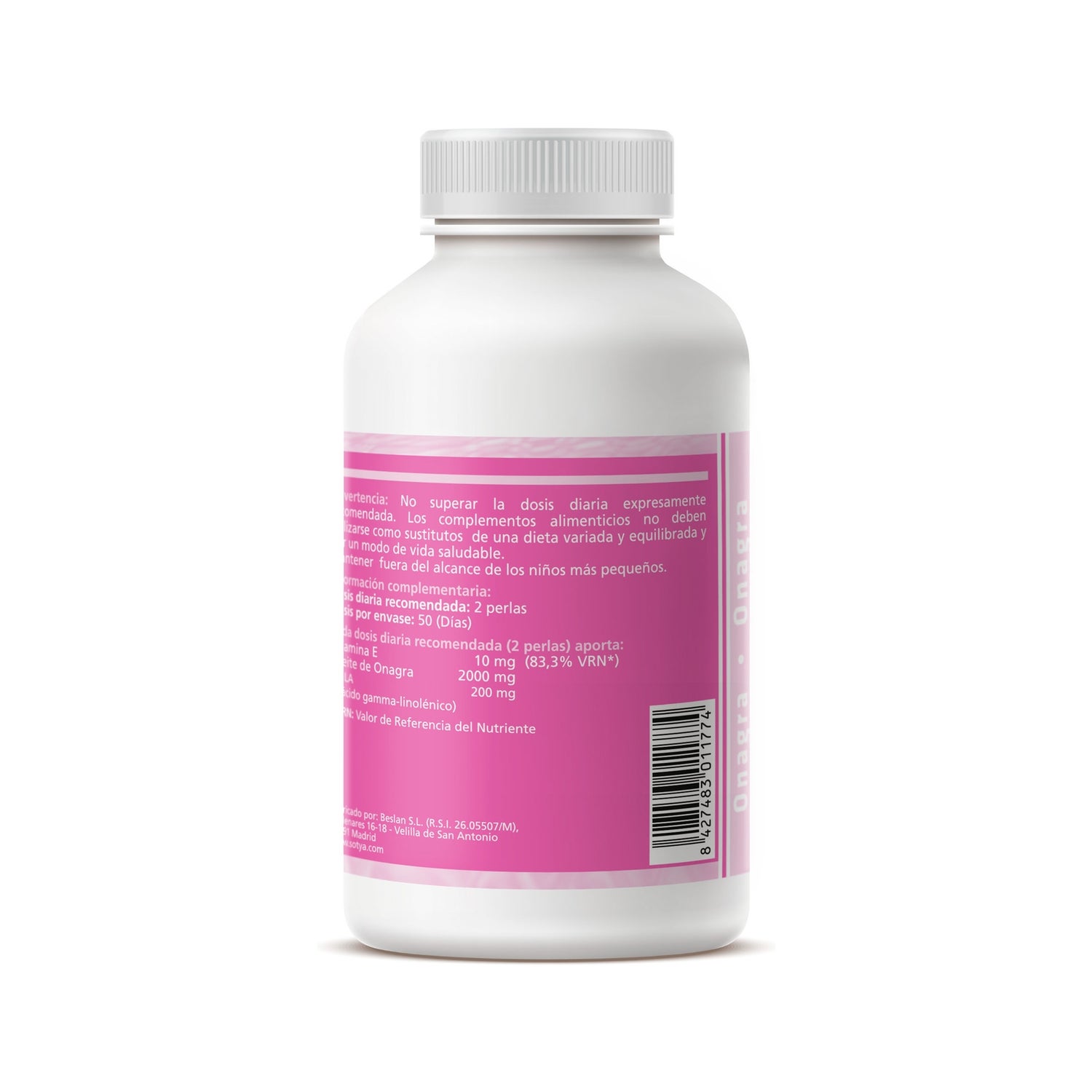 Feito de óleo de onagra, um óleo vegetal rico em ácidos gordos essenciais que fornece ao corpo todos os nutrientes de que necessita para tratar a pele e distúrbios menstruais.