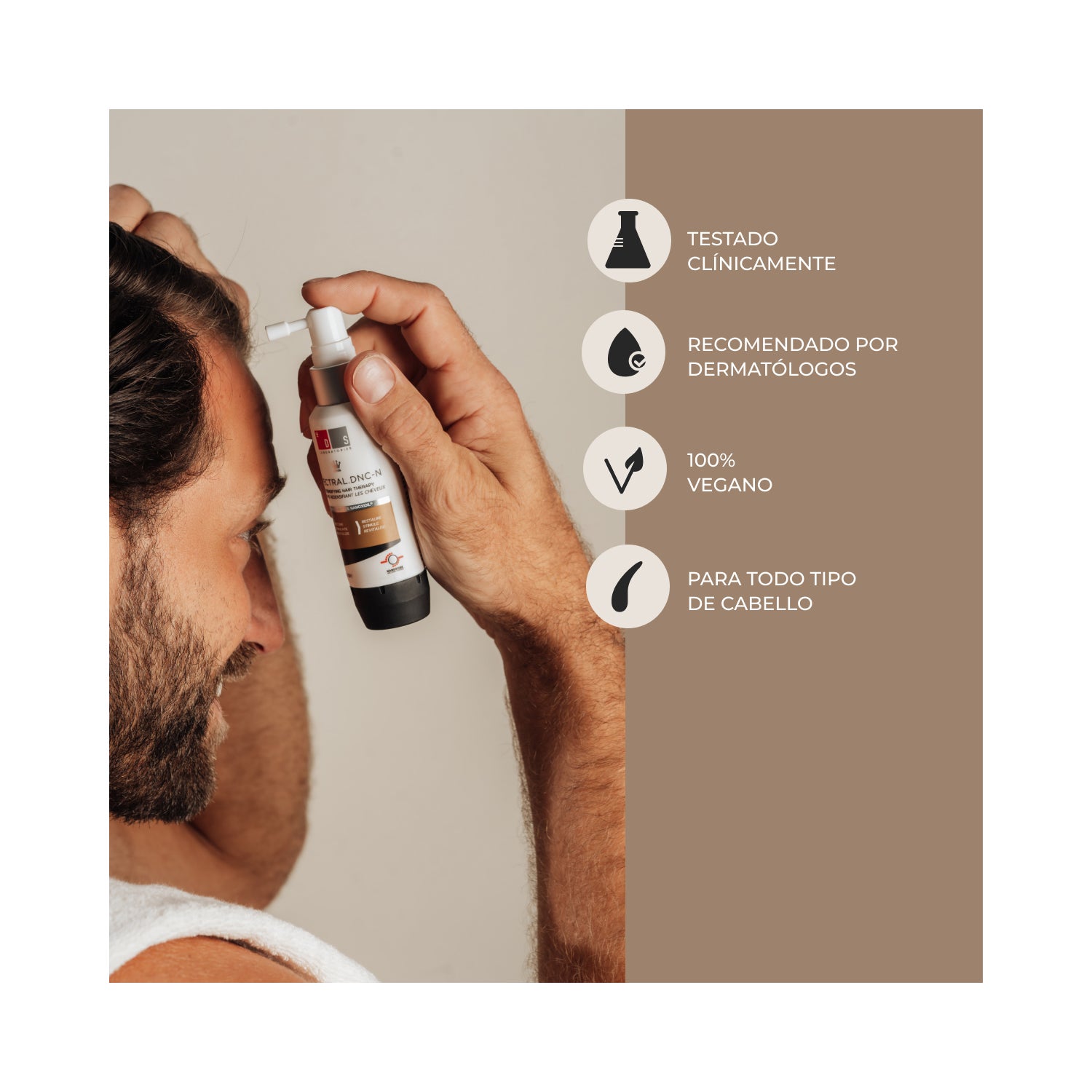 Spectral Pack Dnc-N Hair Loss Treatment 3x60ml é um tratamento capilar em ampolas, concebido para estimular o folículo piloso. Elaborado com uma nova fórmula patenteada com 5% de Nanoxidil®, um ingrediente ativo que ajuda a prevenir a queda do cabelo, ajudando-o a regenerar-se e a engrossar. Contém péptidos de cobre que favorecem a microvascularização e ácido azelaico. Enriquecido com cafeína e retinol, que ajudam a nutrir a fibra capilar. Indicado para pessoas com tendência para a alopécia ou com cabelos frágeis.