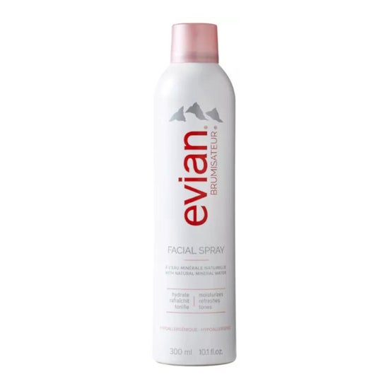 Evian Spray Brumisateur aumenta a hidratação da pele, ajuda a fixar a maquilhagem e proporciona uma verdadeira sensação de frescura e pureza.CARACTERÍSTICAS Evian Water Spray hidrata, refresca e tonifica a pele. Nascida no coração dos Alpes, a água mineral natural de Evian tem uma composição mineral equilibrada e um pH neutro adequado a todos os tipos de pele. Nota: este produto é um aerossol e só pode ser entregue nos países da União Europeia e na Suíça. INFORMAÇÕESEvian Spray Brumisateur aumenta a hidratação da pele, ajuda a fixar a maquilhagem e proporciona uma verdadeira sensação de frescura e pureza. INDICAÇÃO Spray de nebulização.