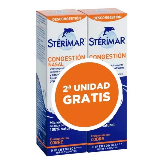 Sterimar Congestão Nasal Spray Dúo 2x100ml é mais do que uma simples solução hipertónica de água do mar. Este produto é completamente natural e tem origem marinha, oferecendo um alívio rápido e prolongado para situações de constipação e sinusite.