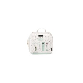 Tudo isso apresentado em um atraente necessaire de tecido que facilita seu transporte, seja em casa ou no carrinho.