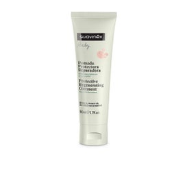 Suavinex Baby Pomada Protetora Reparadora 50 ml para a área da fralda protege e ajuda a reparar a pele delicada na região da fralda em recém-nascidos, bebês e crianças. Contém 92% de ingredientes de origem natural e forma uma barreira contra: