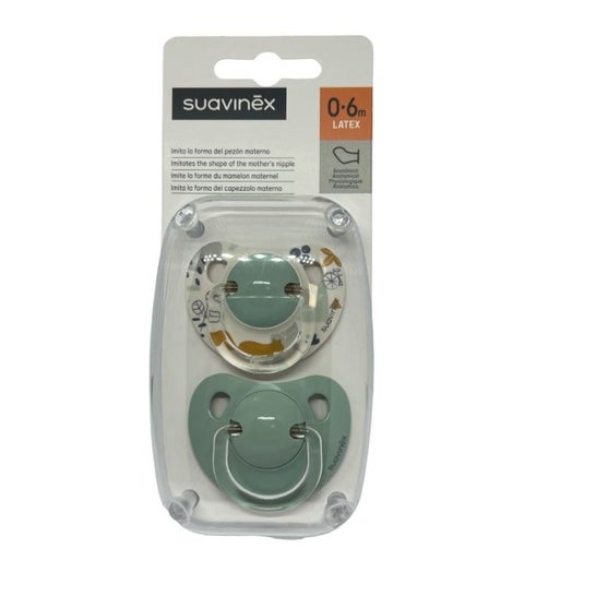 O chupete anatômico de látex Suavinex® 0-6 Meses é um chupete anatômico de látex. Seu material reproduz a sensação do seio materno, por isso é uma opção ideal para garantir a sucção da criança, já que suas tetinas ergonômicas imitam o mamilo e favorecem a tranquilidade diária do bebê.