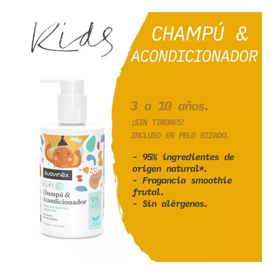 Suavinex Kids Shampoo & Conditioner 300ml é um gel 2 em 1 que ajuda a limpar e a desembaraçar facilmente o cabelo. Tem também um aroma muito agradável e a sua textura é suave e agradável. Contém 300ml.