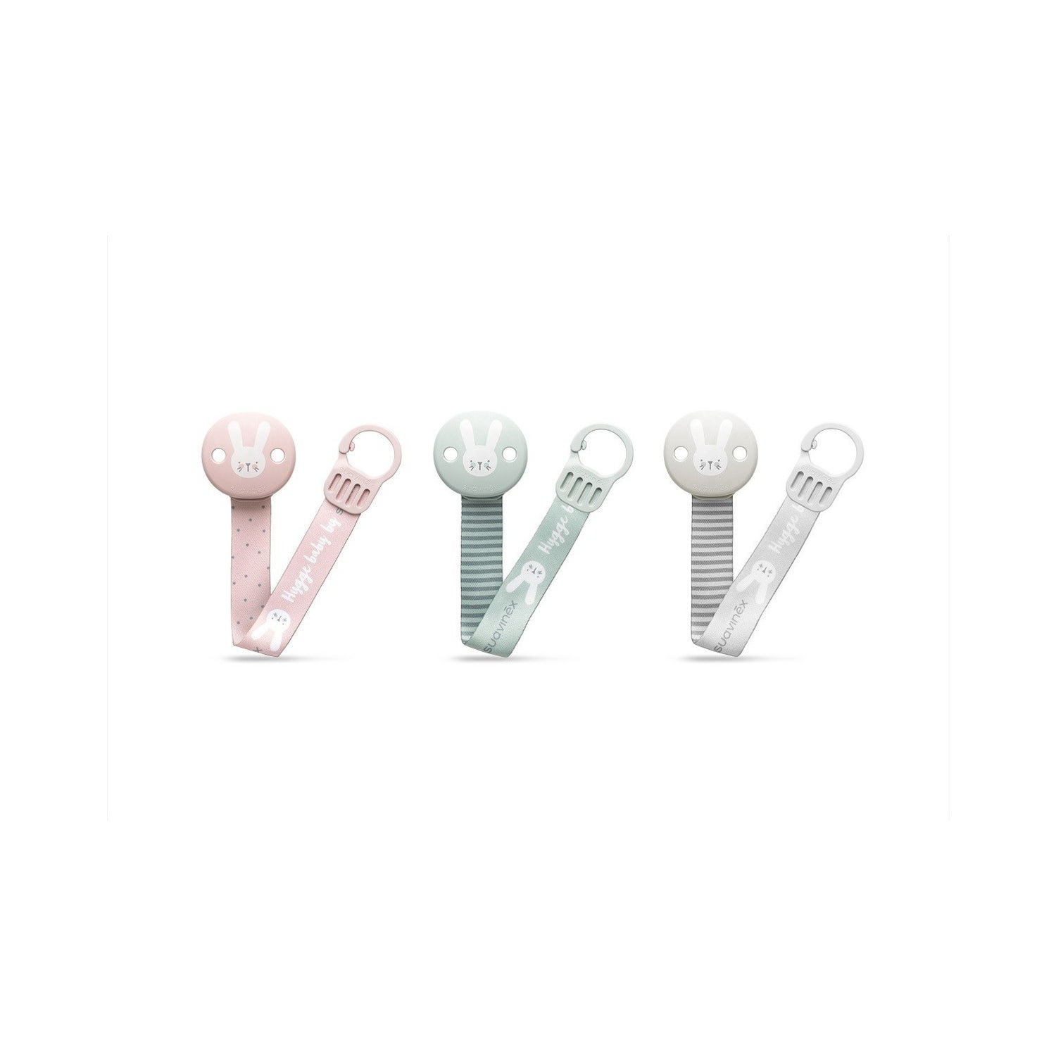 Suavinex Brooch Plate Brooch Rabbit Ribbon é um belo broche em forma de urso contendo um clipe e uma fita que lhe permite prender a chupeta à roupa do bebé para que esta fique sempre agarrada e que há menos probabilidades de cair.