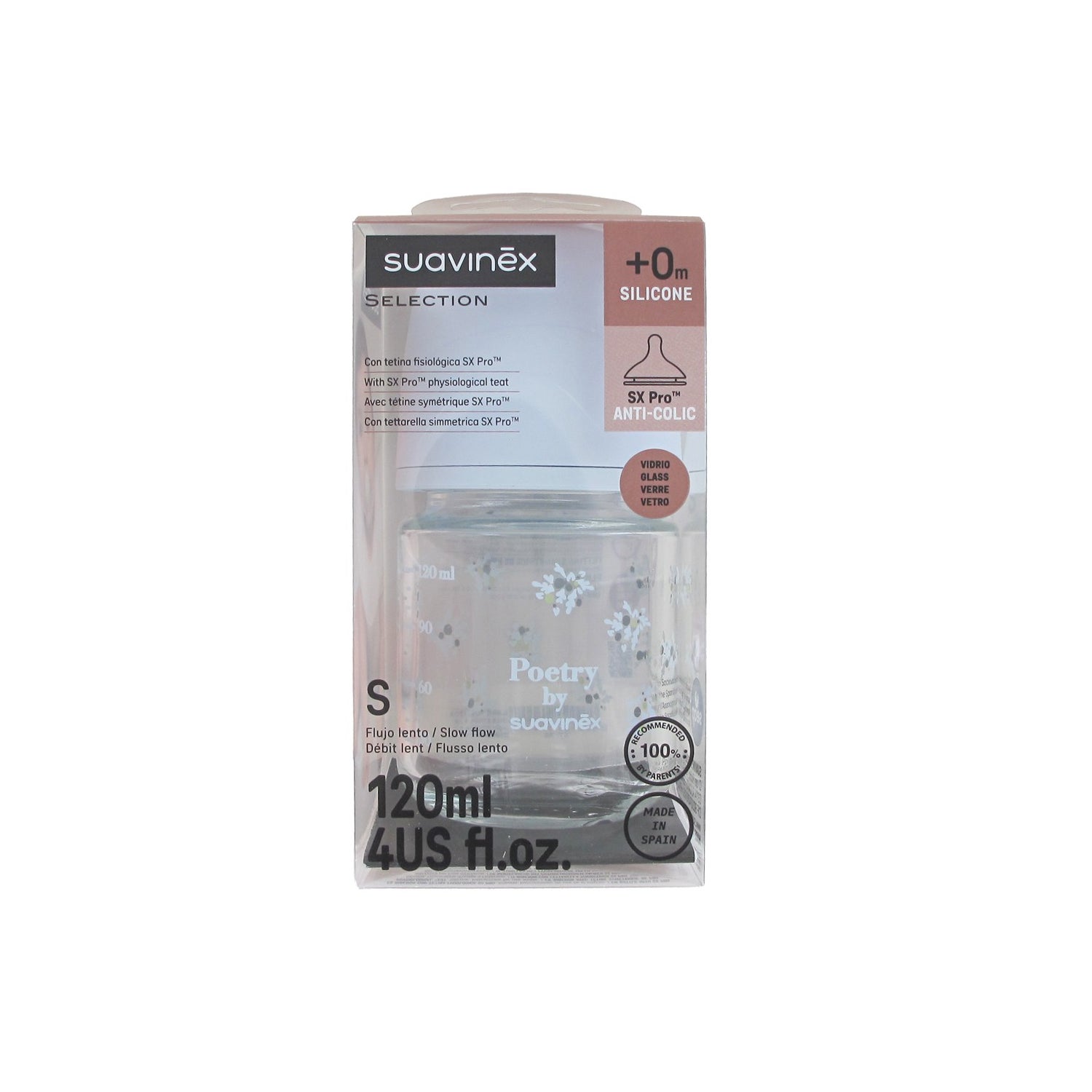 Suavinex Selection Biberão Vidro Poetry SX Pro Fluxo S 120 ml