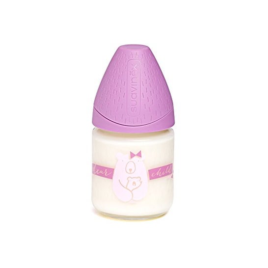 Garrafa de vidro com capacidade de 120ml e uma tetina redonda de silicone com tecnologia rotativa que permite a dosagem do líquido, conseguindo a aspiração correcta desde o primeiro dia. Graças aos seus materiais, pode ser utilizado tanto para líquidos quentes como para líquidos frios. Também é decorado com divertidos motivos infantis. *A cor e o design do produto podem variar de acordo com a disponibilidade.