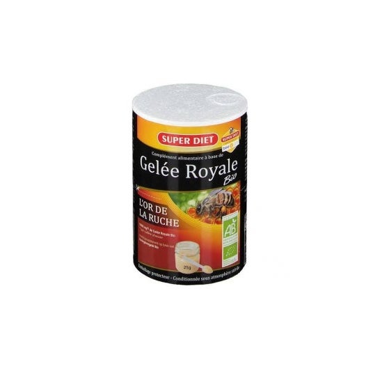 Gelée Royale da Super Diet é um suplemento alimentar biológico à base de geleia real que ajuda a apoiar as defesas naturais. CARACTERÍSTICAS Congelação da Gelée Royale durante o transporte e o armazenamento para garantir uma qualidade ótima. Embalagem em atmosfera estéril, sem oxigénio. Isto permite uma conservação antes da abertura durante vários meses à temperatura ambiente. Embalagem em um invólucro protetor contra calor, humidade e luz. Sem conservantes. INFORMAÇÃO Gelée Royale da Super Diet é um suplemento alimentar biológico à base de geleia real que ajuda a apoiar as defesas naturais.